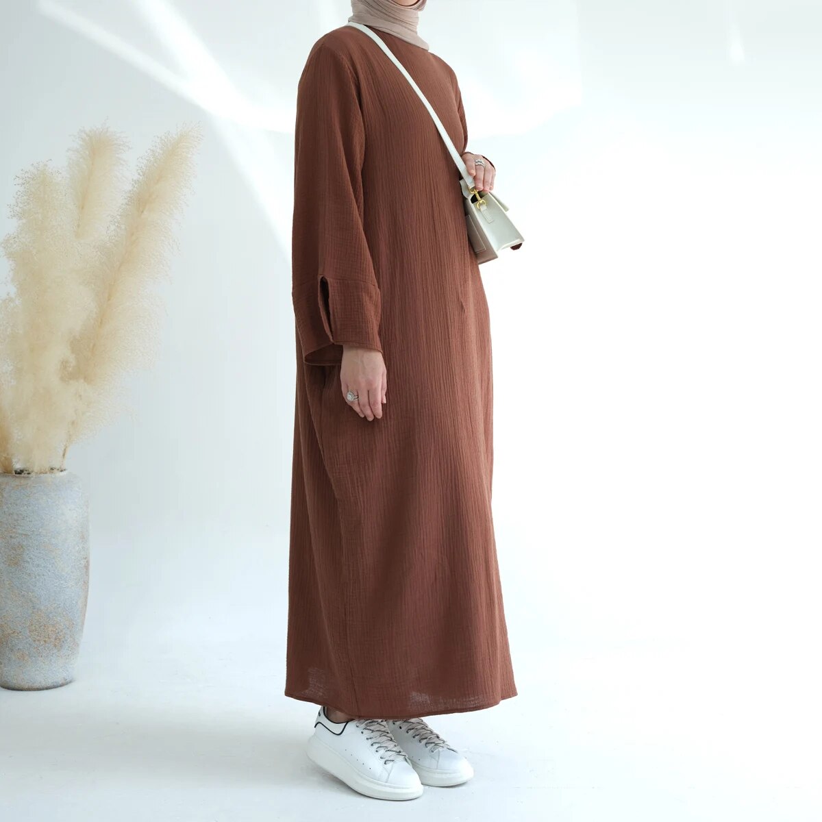 Stap in verfijning met onze 3abaya Dubai collectie. Voeg elegantie toe aan je garderobe met deze prachtige, bruine abaya's. De perfecte combinatie van comfort en stijl voor moderne vrouwen.